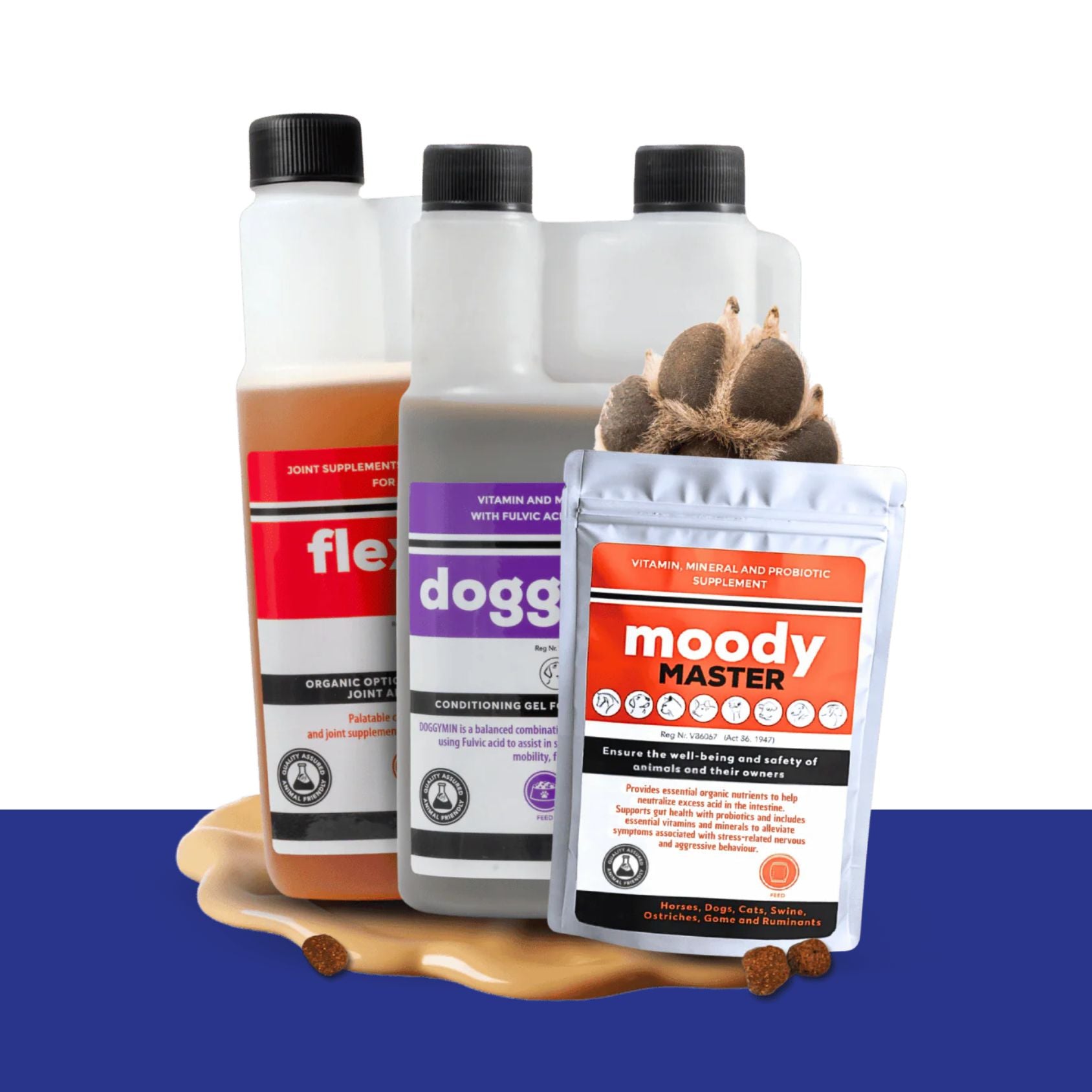 Give your dog the daily support they truly need. DoggyMin, FlexCare and Moody Master each target a different pillar of wellbeing — joints, nutrients, stress...