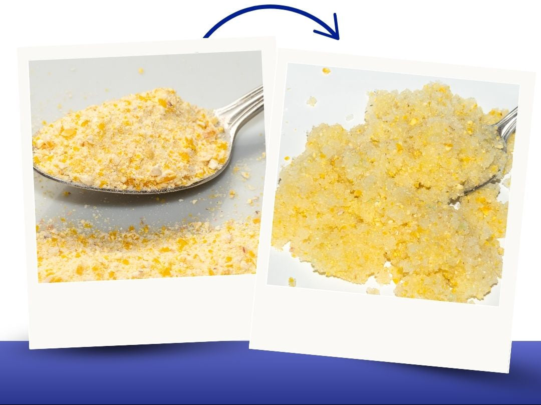 Mix approximately 20 g of the dry product with 100 ml of water. Stir thoroughly until all the water is absorbed and a crumble mix is formed.
